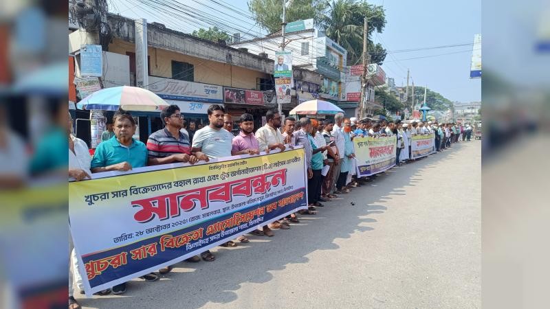 ঝিনাইদহে খুচরা সার বিক্রেতাদের বহাল রাখা ও টিও লাইসেন্সের দাবিতে মানববন্ধন কর্মসূচি পালিত হয়েছে।