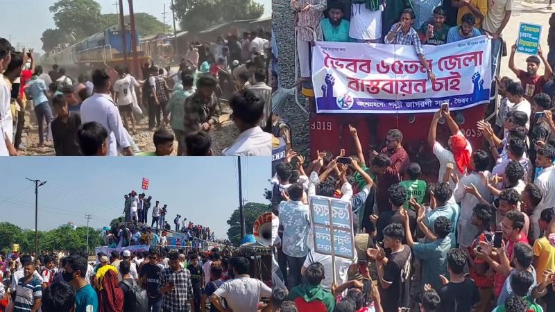 ভৈরব রেলওয়ে স্টেশন মাস্টার ইউসুফ জানান, জেলা ঘোষণার দাবিতে রেলপথ অবরোধের সময় দীর্ঘক্ষণ স্টেশনে ট্রেন আটকে অবরোধ কর্মসূচির শেষের দিকে হঠাৎ করে বৃষ্টির মতো ট্রেনে পাথর ছোড়া হয়।