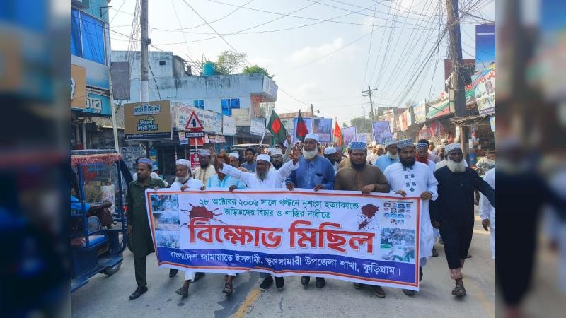 কুড়িগ্রামের ভূরুঙ্গামারীতে ২০০৬ সালের ২৮ অক্টোবর রাজধানীর পল্টনে আওয়ামী লীগ ও ১৪ দল কর্তৃক লগি-বৈঠার হামলার বিচারের দাবিতে বিক্ষোভ সমাবেশ করেছে উপজেলা জামায়াত।