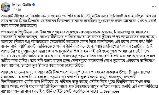 সূত্র: ড. মির্জা গালিবের ভেরিফায়েড ফেসবুক পেজ।