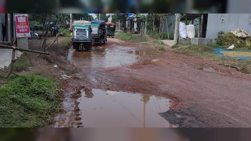 বন্যায় ক্ষতিগ্রস্ত পল্লী সড়ক অবকাঠামো পুনর্বাসন প্রকল্পের আওতায় ২০২৪ সালের সেপ্টেম্বর মাসে টাঙ্গাইল নির্বাহী প্রকৌশলীর কার্যালয় থেকে দুইটি কার্যাদেশ প্রদান করা হয়। এর মধ্যে মেসার্স কৃষ্ণা স্টুডিওকে ৪৫০০ মিটার থেকে ৮৬৮৫ মিটার পর্যন্ত মোট ৪.১৮৫ কিলোমিটার অংশের কাজ এবং এম,এস নাইস ট্রেডার্সকে ০ থেকে ৪৫০০ মিটার পর্যন্ত মোট ৪.৫ কিলোমিটার অংশের কাজের দায়িত্ব দেওয়া হয়। দুই প্রতিষ্ঠানের মোট চুক্তিমূল্য প্রায় ৯৭ কোটি ৭৫ লাখ টাকা। সংস্কার কাজ শুরু হয় ২ অক্টোবর ২০২৪ এবং শেষ হওয়ার কথা ছিল ২০২৫ সালের ৩০ এপ্রিলের মধ্যে। কিন্তু সংশ্লিষ্ট ঠিকারদার সড়কের এক পাশের মাটি খুড়ে কাজ না করেই লাপাত্তা হন। ফলে সীমাহীন দূর্ভোগ ও অবর্ণনীয় কষ্টে মধ্যে পড়েছে এ সড়কের ছোট বড় যানবাহনসহ পথচারিরা। ইজিবাইক চালক আবুল বলেন, রাস্তার পাশে গর্ত করে রাখায় গাড়ি ওভারটেকিং করতে গিয়ে মাঝে মধ্যেই দূর্ঘটনার শিকার হতে হয়। ব্যবসায়ী আলিম মিয়া জানান, পণ্য পরিবহনের সময় ট্রাক-ভ্যান গর্তে আটকে যায়। সময়মতো পণ্য পৌঁছাতে পারছি না, ব্যবসায় ক্ষতিগ্রস্ত হচ্ছি।
