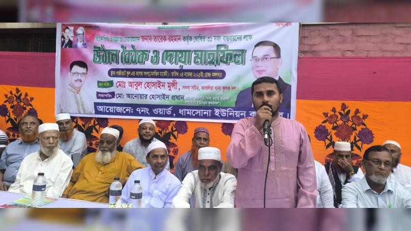ধামসোনা ইউনিয়ন কৃষকদলের সভাপতি আনোয়ার হোসাইন প্রধানের সভাপতিত্বে উঠান বৈঠক ও দোয়া মাহফিলের অনুষ্ঠানে প্রধান অতিথি হিসেবে উপস্থিত ছিলেন আশুলিয়া থানা কৃষকদলের সদস্য সচিব মো: আবুল হোসাইন মুন্সী। অনুষ্ঠানে এসময় বিশেষ অতিথি হিসেবে উপস্থিত ছিলেন বিএনপি নেতা লোকমান হেকিম, ধামসোনা ইউনিয়ন স্বেচ্ছাসেবক দলের সভাপতি মো: বাবুল হোসেন ও ছাত্রদল নেতা সানোয়ার হোসেনসহ স্থানীয় বিএনপি ও এর অঙ্গসংগঠনের নেতৃবৃন্দ।