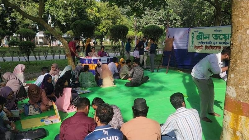 পরিবেশ সচেতনতা বৃদ্ধির লক্ষ্যে ইসলামী বিশ্ববিদ্যালয় (ইবি) শাখা গ্রীন ভয়েসের উদ্যোগে “পোস্টার প্রেজেন্টেশন প্রতিযোগিতা–২০২৫” অনুষ্ঠিত হয়েছে। মঙ্গলবার (৪ নভেম্বর) দুপুর ২টায় বিশ্ববিদ্যালয়ের ডায়না চত্বরে এ প্রতিযোগিতা অনুষ্ঠিত হয়। এতে অংশগ্রহণকারীরা পরিবেশ ও টেকসই উন্নয়ন সম্পর্কিত বিভিন্ন বিষয়ে পোস্টার উপস্থাপন করেন।