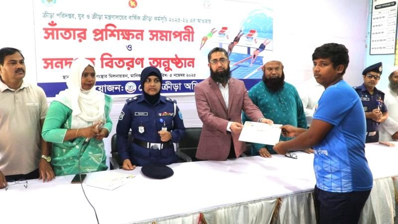 মানিকগঞ্জে মাধ্যমিক শিক্ষার্থীদের (অনূর্ধ্ব- ১৫) সাঁতার প্রশিক্ষণ সমাপ্ত হয়েছে। সমাপনী এই অনুষ্ঠানে ৪০ জন শিক্ষার্থীকে প্রশিক্ষণ সনদ প্রদান করা হয়েছে।