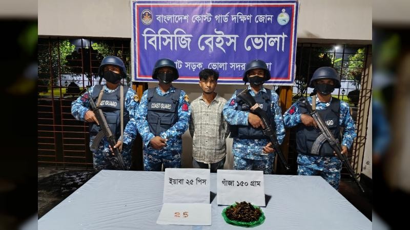 ভোলায় বাংলাদেশ কোস্ট গার্ডের অভিযানে ইয়াবা ও গাঁজাসহ এক মাদক কারবারিকে আটক করা হয়েছে।