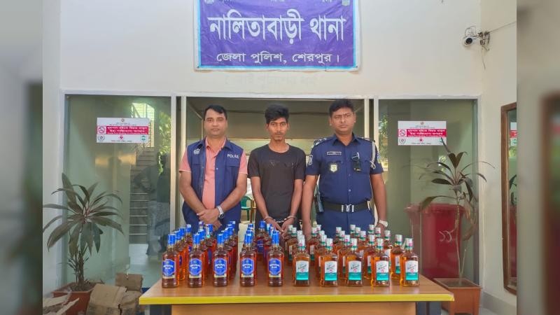শেরপুরের নালিতাবাড়ীতে ৪৮ বোতল ভারতীয় মদসহ সেলিম মিয়া (২৪) নামে এক মাদককারবারিকে গ্রেপ্তার করেছে পুলিশ। শুক্রবার (৭ নভেম্বর) দুপুরে গ্রেপ্তারকৃতকে আদালতে পাঠানো হয়েছে। এর আগে বৃহস্পতিবার বিকেলে উপজেলার পোড়াগাঁও ইউনিয়নের উত্তর আন্ধারুপাড়া এলাকা থেকে তাকে গ্রেপ্তার করে পুলিশ। গ্রেপ্তার সেলিম মিয়া ওই এলাকার ইদ্রিস আলীর পুত্র।