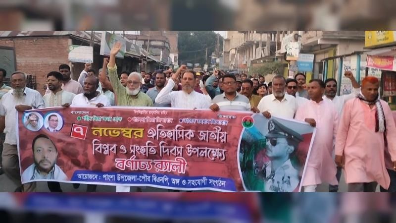 রাজবাড়ীর পাংশা উপজেলা-পৌর বিএনপি ও সহযোগী সংগঠনের আয়োজনে শুক্রবার বিকালে পাংশা উপজেলা বিএনপির দলীয় কার্যালয়ের সামনে থেকে ঐতিহাসিক ৭ নভেম্বর জাতীয় বিল্পব ও সংহতি উপলক্ষে এক বর্ণাঢ্য শোভাযাত্রা বের করা হয়।