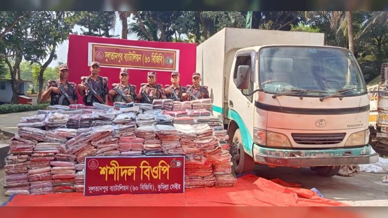 বিজিবি সূত্রে জানা যায়, শনিবার সকালে সীমান্তবর্তী এলাকায় অভিযান চালিয়ে একটি পিকআপভর্তি ভারতীয় উন্নতমানের শাড়ি, থ্রিপিস ও সাল চাদর জব্দ করা হয়।