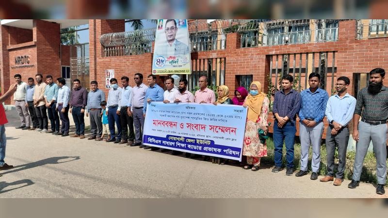 বিসিএস ৩২ থেকে ৩৭তম ব্যাচের সাধারণ শিক্ষা ক্যাডারদের মধ্যে যোগ্য সকল প্রভাষকদের সহকারী অধ্যাপক পদে ভূতাপেক্ষ পদোন্নতির জিও জারির দাবিতে মানববন্ধন ও সংবাদ সম্মেলন করেছে বিসিএস সাধারণ শিক্ষা ক্যাডার প্রভাষক পরিষদ নোয়াখালী।