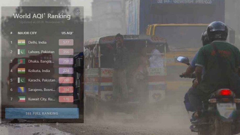 এ ছাড়া স্কোর ৫৭৭ নিয়ে প্রথম স্থানে রয়েছে ভারতের দিল্লি। ৩৫৬ স্কোর নিয়ে দ্বিতীয় স্থানে রয়েছে পাকিস্তানের লাহোর এবং ২২৪ স্কোর নিয়ে চতুর্থ স্থানে রয়েছে ভারতের আরেক শহর কলকাতা।