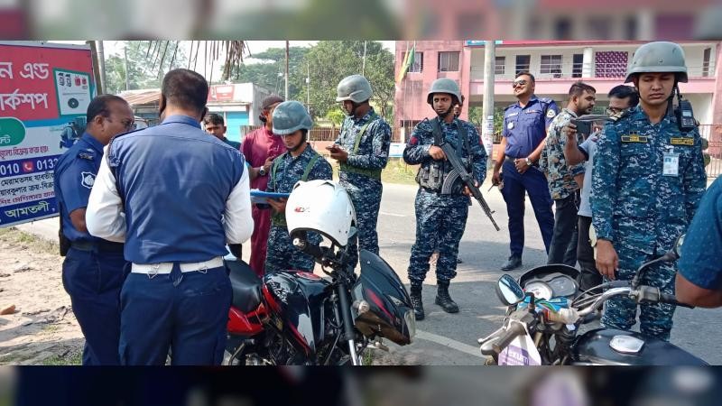 ফায়ার সার্ভিসের সম্মুখের মহাসড়কে চেকপোস্ট বসিয়ে বিভিন্ন যানবাহনের কাগজপত্র, ড্রাইভিং লাইসেন্স, হেলমেট ব্যবহারসহ সড়কে আইন মেনে চলার বিষয়গুলো সতর্কভাবে পরীক্ষা করা হয়। পাশাপাশি সন্দেহভাজন ব্যক্তিদের তল্লাশি ও জিজ্ঞাসাবাদ করা হয়।