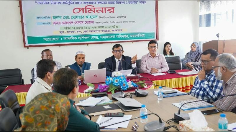 সামাজিক নিরাপত্তা কর্মসূচির সফল বাস্তবায়নে বিদ্যমান সমস্যা চিহ্নিতকরণ ও করণীয় নির্ধারণে ময়মনসিংহে এক সেমিনার অনুষ্ঠিত হয়েছে। জেলা সমাজসেবা কার্যালয়ের সম্মেলন কক্ষে সমাজসেবা অধিদপ্তরের আয়োজনে অনুষ্ঠিত এ সেমিনারে প্রধান অতিথি ছিলেন ময়মনসিংহ বিভাগের বিভাগীয় কমিশনার মো. মোখতার আহমেদ। সভায় সভাপতিত্ব করেন বিভাগীয় সমাজসেবা কার্যালয়ের পরিচালক (উপসচিব) মোহাম্মদ গোলাম মোস্তফা। এতে বিভাগের আওতাধীন চার জেলার উপপরিচালক, ৩৯টি ইউনিটের সমাজসেবা কর্মকর্তা এবং সংশ্লিষ্ট কর্মকর্তারা উপস্থিত ছিলেন।