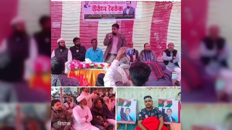 রাজবাড়ী-২ আসনে বিএনপির প্রার্থীকে মনোনয়ন দেওয়ার দাবিতে আমরণ অনশন করা তারেক জিয়া পরিষদের রাজবাড়ী জেলা শাখার আহ্বায়ক ও কেন্দ্রীয় কমিটির যুগ্ম আহ্বায়ক রিয়াজুল ইসলাম জাতীয়তাবাদী গণতান্ত্রিক আন্দোলন (এনডিএম)-এর মহাসচিব মোমিনুল আমিনের সাথে একাধিক কর্মসূচিতে পাংশা-কালুখালিতে ছিলেন।