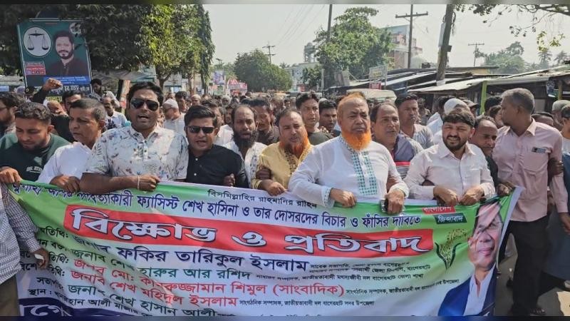 বাগেরহাটে শেখ হাসিনার ফাঁসির দাবিতে বিক্ষোভ ও প্রতিবাদ সমাবেশ অনুষ্ঠিত হয়েছে। জুলাই আন্দোলনে অংশগ্রহণকারী ছাত্র জনতাকে হত্যা ও পঙ্গু করার প্রতিবাদে ফ্যাসিস্ট শেখ হাসিনা ও তার দোসরদেব বিচার ও ফাঁসির দাবিতে এই প্রতিবাদ ও বিক্ষোভ সমাবেশ অনুষ্ঠিত হয়।