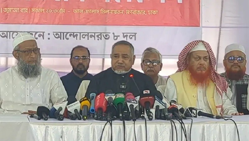 শুক্রবার (১৪ নভেম্বর) সকালে রাজধানীর মগবাজারে আল ফালাহ মিলনায়তনে অনুষ্ঠিত এক সংবাদ সম্মেলনে আট দলের এ অবস্থান তুলে ধরেন জামায়াতের নায়েবে আমির ডা. সৈয়দ আব্দুল্লাহ মো. তাহের।