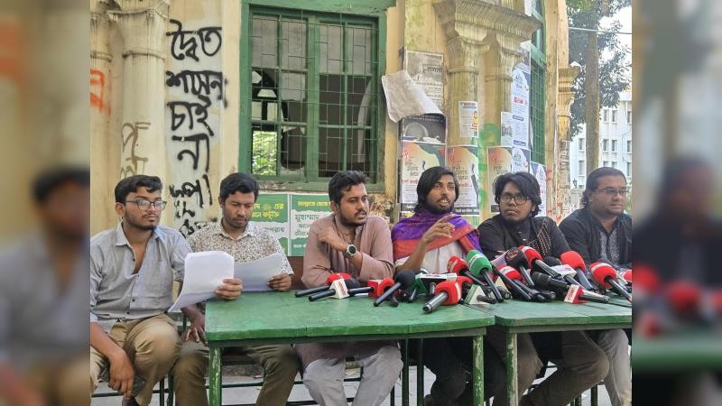 শনিবার (১৫ নভেম্বর) ঢাকা বিশ্ববিদ্যালয় মধুর ক্যান্টিনের সামনে ইসরাফিল ফরাজীর পরিচালনায় ‘জুলাই সনদ বাস্তবায়ন ও চলমান পরিস্থিতি নিয়ে আয়োজিত জরুরি সংবাদ সম্মেলনে তিনি একথা বলেন।