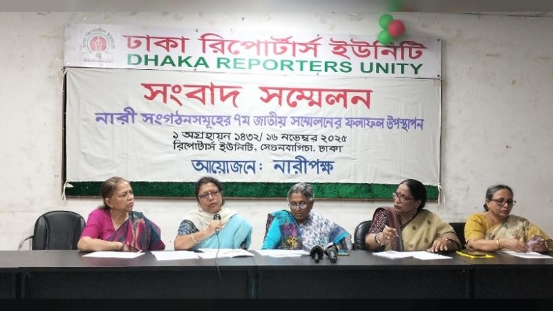 ঢাকা রিপোর্টার্স ইউনিটিতে আজ ১ অগ্রহায়ণ ১৪৩২/১৬ নভেম্বর ২০২৫ তারিখে নারীপক্ষ আয়োজিত এক সংবাদ সম্মেলনে "প্রতিবাদে প্রতিরোধে নারীর পথচলা" শীর্ষক নারী সংগঠনসমূহের ৭ম জাতীয় সম্মেলনের ফলাফল উপস্থাপন করা হয়।