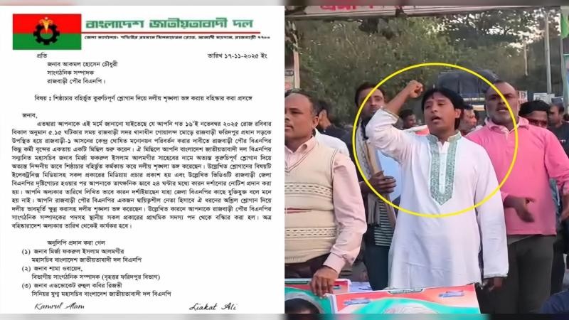 চিঠিতে বলা হয়েছে, গত ১৬ নভেবম্বর বিকেল সোয়া ৫টার দিকে রাজবাড়ী সদর থানার গোয়ালন্দ মোড়ে রাজবাড়ী-ফরিদপুর প্রধান সড়কে উপস্থিত হয়ে রাজবাড়ী-১ আসনের কেন্দ্র ঘোষিত মনোনয়ন পরিবর্তন করার দাবীতে রাজবাড়ী পৌর বিএনপির কিছু কর্মীবৃন্দের একতায় একটি মিছিল শুরু হয়।