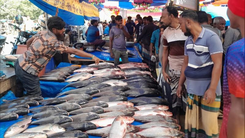 সারি সারি দোকান, সেখানে থরে থরে সাজানো রুই, কাতলা, সিলভার কার্প, ব্ল্যাককার্প, বিগহেড, চিতল, বোয়ালসহ হরেক রকমের মাছ।