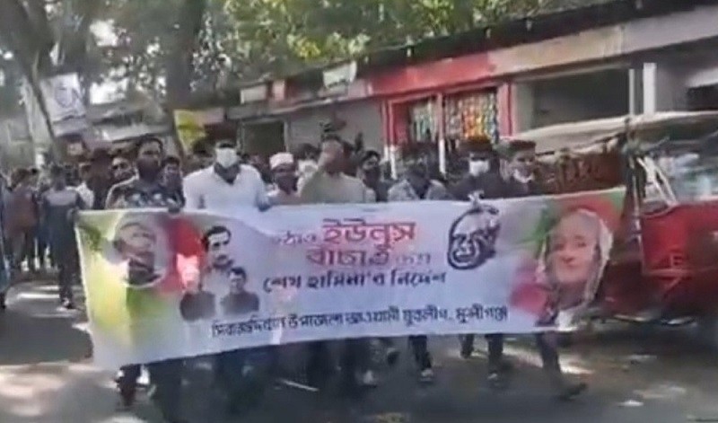 মুন্সীগঞ্জের সিরাজদিখান উপজেলায় নিষিদ্ধঘোষিত রাজনৈতিক কার্যক্রমের মধ্যেই যুবলীগ ও নিষিদ্ধ ছাত্রলীগের ব্যানারে পুলিশের সামনেই প্রকাশ্যে মিছিল হয়েছে। আজ মঙ্গলবার (১৮ নভেম্বর) সকাল ৯টার দিকে উপজেলার বাসাইল ইউনিয়নের ইমামগঞ্জ বাজার এলাকায় স্থানীয় যুবলীগ-ছাত্রলীগ সমর্থিত নেতাকর্মীরা এই মিছিল বের করেন।