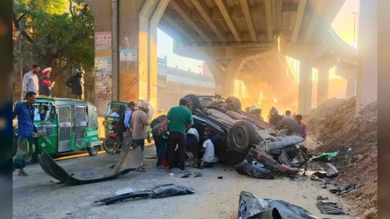প্রত্যক্ষদর্শীয় স্থানীয়রা জানান, প্রাইভেটকারটি বেপরোয়া গতিতে ফ্লাইওভার অতিক্রম করছিল। নিমতলা মোড়ে পৌঁছার পর ফ্লাইওভারের সীমানা দেওয়ালের অংশ ভেঙে সেটি নিচে পড়ে যায়।