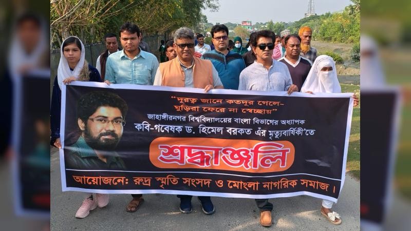 অকাল প্রয়াত কবি, গবেষক, প্রাবন্ধিক ও জাহাঙ্গীরনগর বিশ্ববিদ্যালয়ের বাংলা বিভাগের অধ্যাপক ড. হিমেল বরকতের পঞ্চম মৃত্যুবার্ষিকী উপলক্ষে দিনব্যাপী নানা কর্মসূচি পালিত হয়েছে মোংলায়। কর্মসূচির মধ্যে ছিল শোভাযাত্রা, কবির সমাধিতে শ্রদ্ধাঞ্জলি অর্পণ, দোয়া ও মোনাজাত।