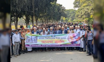 এর আগে সকাল সাড়ে ১০টায় বিশ্ববিদ্যালয়ের সকল বিভাগ, অফিস, ইনস্টিটিউট, হল, ল্যাবরেটরি স্কুল অ্যান্ড কলেজ এবং বিভিন্ন ছাত্রসংগঠন ফুটবল মাঠে সমবেত হয়। পরে সেখানে উপাচার্য কেক কাটেন। পরে সকাল সাড়ে ১১টায় সেখান থেকে প্রশাসন, সকল বিভাগ, অফিস, ইনস্টিটিউট ও হলের অংশগ্রহণে বর্ণাঢ্য আনন্দ র্যালি বের করা হয়। র্যালিটি ক্যাম্পাসের বিভিন্ন সড়ক প্রদক্ষিণ করে শহীদ প্রেসিডেন্ট জিয়াউর রহমান স্থাপিত ভিত্তিপ্রস্তর চত্বরে এসে শেষ হয়। পরে বিশ্ববিদ্যালয় প্রশাসন সেখানে পুষ্পস্তবক অর্পণ করে শ্রদ্ধা নিবেদন করে। এসময় বিশ্ববিদ্যালয়ের উপাচার্য, উপ-উপাচার্য, কোষাধ্যক্ষ, রেজিস্ট্রার, বিভিন্ন অনুষদের ডিন, শিক্ষক-শিক্ষার্থী এবং কর্মকর্তা-কর্মচারীরা উপস্থিত ছিলেন।