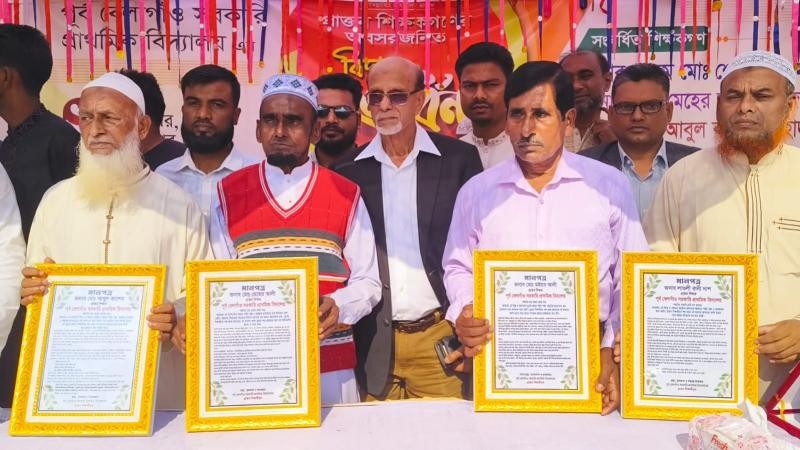 মৌলভীবাজার মৌলভীবাজার জেলার জুড়ী উপজেলার পূর্ব বেলাগাওঁ সরকারি প্রাথমিক বিদ্যালয়ের অবসরপ্রাপ্ত প্রতিষ্ঠাকালীন প্রধান শিক্ষক মো. শেখ ফরিদ, প্রতিষ্ঠাকালীন সহকারী শিক্ষক মোঃ আবুল কাশেম, প্রতিষ্ঠাকালীন সহকারী শিক্ষক মোঃ মেহের আলী, প্রতিষ্ঠাকালীন সহকারী শিক্ষক মোঃ মইয়ব আলী কে সংবর্ধনা প্রদান করা হয়েছে।