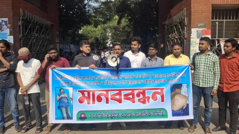 সরকারি তিতুমীর কলেজ সাংবাদিক সমিতির সাবেক সভাপতি ও বাংলা দেশ প্রতিদিনের নিজস্ব প্রতিবেদক তাওসিফ মাইমুনের ওপর ছাত্রদলের হামলার প্রতিবাদে আয়োজিত মানববন্ধনে পুনরায় হামলা চালিয়েছে ছাত্রদল।