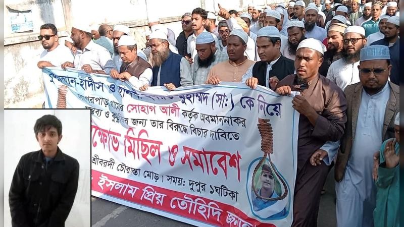 এদিকে, ফেসবুকে মহানবী (সা.)কে নিয়ে কটূক্তি করে পোস্ট করায় রবিবার দুপুরে উত্তেজিত এলাকাবাসী, বাংলাদেশ জামায়াতে ইসলামী, হেফাজতে ইসলাম, বাংলাদেশ ইসলামী আন্দোলনসহ বিভিন্ন ইসলামী দলের ব্যানারে কটূক্তিকারী সোহাগের সবোর্চ্চ শাস্তির দাবিতে বিক্ষোভ মিছিল বের করেন। মিছিলটি শ্রীবরদী পৌর শহরের প্রধান প্রধান সড়ক প্রদক্ষিণ করে। বিক্ষোভ মিছিলে সোহাগ আলীর কঠোর শাস্তির দাবি করেন অংশগ্রহণকারীরা।