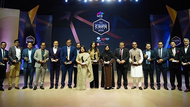 বাংলাদেশের করপোরেট অঙ্গনের ২৪ জন শীর্ষস্থানীয় নির্বাহীকে সম্মাননা প্রদানের মাধ্যমে সম্প্রতি রাজধানীর ইউনাইটেড কনভেনশন সেন্টারে অনুষ্ঠিত হয়েছে বাংলাদেশ সি-স্যুট অ্যাওয়ার্ডস-এর চতুর্থ অধিবেশন। এই বছর ২৩টি ক্যাটাগরিতে সম্মাননা প্রদান করা হয়। আয়োজনটিতে অংশ নেন দেশের শীর্ষ সি-সুইট নির্বাহী, ব্যবসায়িক প্রতিনিধি, উদ্যোক্তা এবং আর্থিক ও বিনিয়োগ খাতের বিশেষজ্ঞরা।