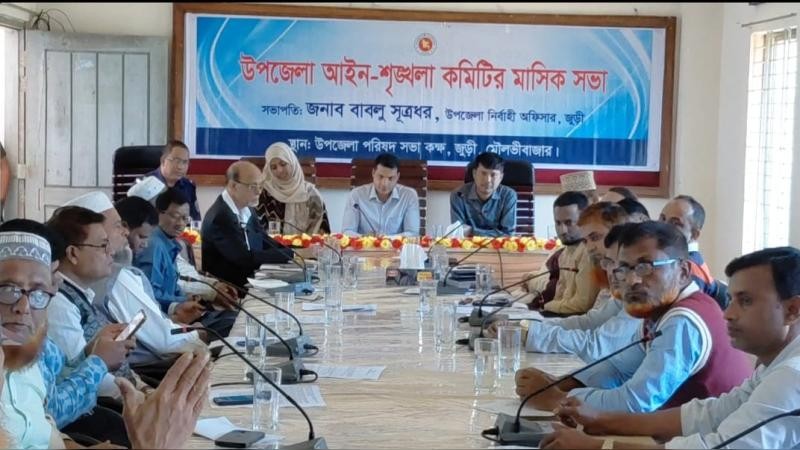 মৌলভীবাজারের জুড়ীতে উপজেলা আইন-শৃঙ্খলা কমিটির মাসিক সভা ও আসন্ন ১৬ ই ডিসেম্বর মহান বিজয় দিবস উপলক্ষে প্রস্তুতি সভা অনুষ্ঠিত হয়েছে। বুধবার (২৫ নভেম্বর) সকালে উপজেলা পরিষদ সভাকক্ষে এসব সভায় সভাপতিত্ব করেন উপজেলা নির্বাহী অফিসার বাবলু সূত্রধর।