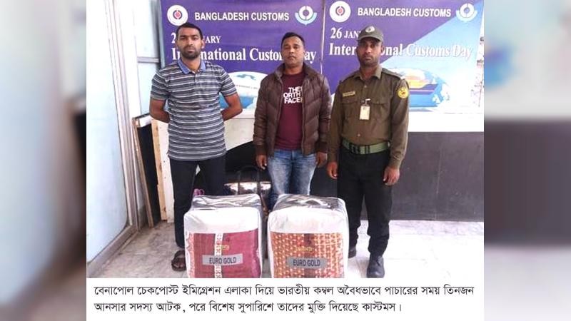 স্থানীয় সূত্র ও দায়িত্বশীল গোয়েন্দা কর্মকর্তারা জানান, পাসপোর্ট ব্যতীত বিদেশি কম্বল পাচারের চেষ্টা করার সময় আনসার সদস্যদের গতিবিধি গোয়েন্দা সংস্থার নজরে আসে। তাদের আটকে জিজ্ঞাসাবাদ করলে তারা নিজেদের আনসার সদস্য পরিচয় দেয়। পরে তাদের কাস্টমসের কাছে সোপর্দ করা হয়।