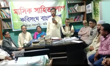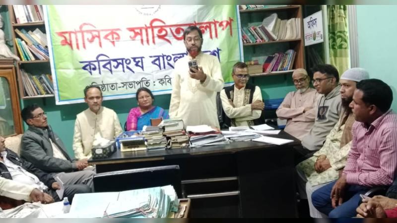 কবিসংঘ বাংলাদেশ'র মাসিক সাহিত্যালাপ শুক্রবার (২৮ নভেম্বর) বিকেলে শেরপুর টাউনের বটতলাস্থ শ্যামলবাংলা২৪ডটকম কার্যালয়ে অনুষ্ঠিত হয়েছে। অনুষ্ঠানে সভাপতিত্ব করেন কবিসংঘ বাংলাদেশ'র ভারপ্রাপ্ত সভাপতি কবি, গীতিকার ও সাংবাদিক রফিকুল ইসলাম আধার।