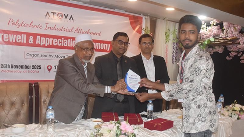 শিল্পভিত্তিক প্রশিক্ষণ সম্পন্নকারী প্রশিক্ষণার্থীদের জন্য ‘ইন্ডাস্ট্রিয়াল ট্রেনিং, ফেয়ারওয়েল অ্যান্ড অ্যাপ্রিসিয়েশন সেরিমনি’ আয়োজন করেছে এটোভা টেকনোলজি।