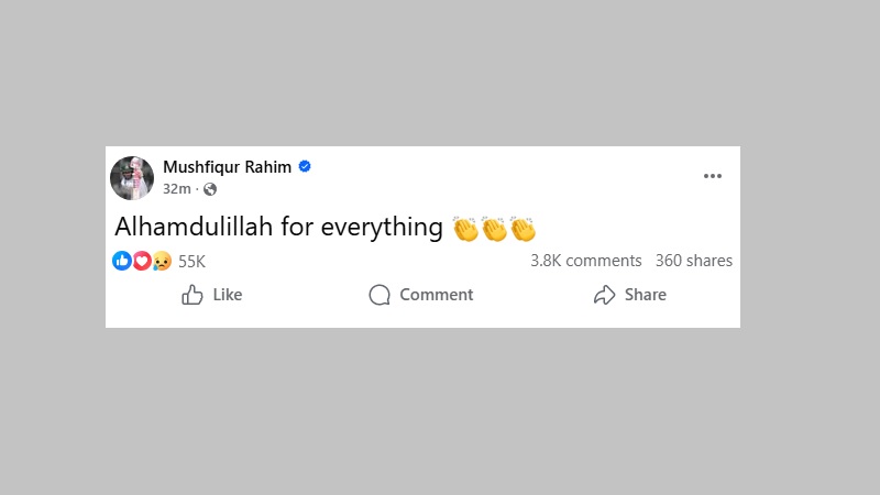 মুশফিকুর রহিমও নিলামের প্রথম ধাপে অবিক্রিত রয়ে গেলেন। সাবেক অধিনায়কের জন্যও আগ্রহ দেখায়নি কোনো দল। পরে ফেসবুক পোস্টে তিনি লেখেন, ‘সবকিছুর জন্য আলহামদুলিল্লাহ’।