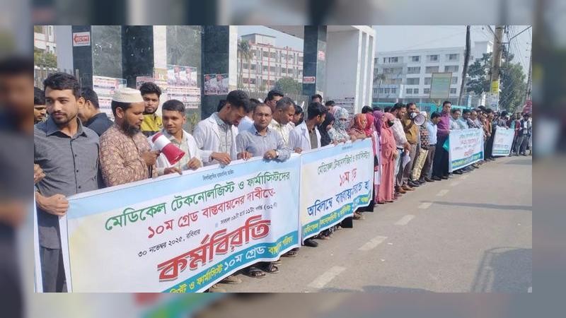বক্তারা বলেন, সরকারি মেডিকেল কলেজ হাসপাতাল, জেলা সদর হাসপাতাল, উপজেলা স্বাস্থ্য কমপ্লেক্স, বেসরকারি ক্লিনিক ও ডায়াগনস্টিক সেন্টার, জাতীয় সংসদ সচিবালয়, সচিবালয় ক্লিনিক, প্রধান উপদেষ্টার কার্যালয়, বঙ্গভবন মেডিকেল সেন্টার, স্বাস্থ্য শিক্ষা প্রতিষ্ঠান ও বিশেষায়িত ইনস্টিটিউটে কর্মরত মেডিকেল টেকনোলজিস্ট ও ফার্মাসিস্টরা বছরের পর বছর ধরে চরম বৈষম্যের শিকার হয়ে মানবসেবা দিয়ে যাচ্ছেন।