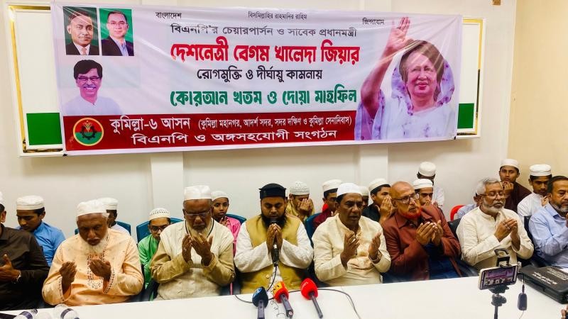 বিএনপির চেয়ারপার্সন ও সাবেক প্রধানমন্ত্রী বেগম খালেদা জিয়ার দ্রুত আরোগ্য কামনায় কুমিল্লা–৬ আসনের প্রভাবশালী নেতা ও সাবেক সংসদ সদস্য হাজী আমিন উর রশিদ ইয়াছিনের ধারাবাহিক উদ্যোগ ৫ম দিনের মতো কোরআনখানি, এতিমশিশুদের জন্য খাবার বিতরণ এবং বিশেষ দোয়া মাহফিলের মাধ্যমে পালন করা হয়েছে।