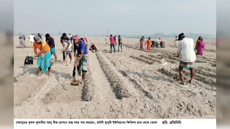 সার সংকটসহ নানা প্রতিকূলতাকে পেছনে ফেলে বগুড়ার শেরপুরে আলু চাষে ব্যস্ত সময় পার করছেন কৃষক-কৃষাণীরা। কার্তিকের হিমেল হাওয়া আর কুয়াশা ভেদ করে কাকডাকা ভোর থেকে সন্ধ্যা পর্যন্ত মাঠে চলছে আলু বীজ রোপণের কাজ।