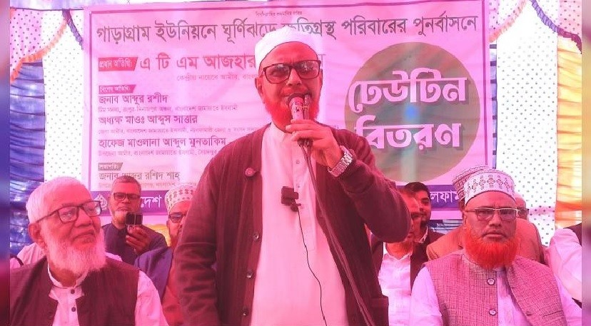 পরে তিনি আলোচনা সভা শেষে উপজেলা জামায়াতের আয়োজনে অনুষ্ঠানে ঝড়ে ক্ষতিগ্রস্থ ৯০ পরিবারকে ১ বান্ডিল করে ঢেউটিন বিতরণ করেন। ঘূর্ণিঝড়ে ক্ষতিগ্রস্থ পরিবারের পুনর্বাসনে ঢেউটিন বিতরণ অনুষ্ঠানটি গাড়াগ্রাম টেপার হাটে অনুষ্ঠিত হয়।