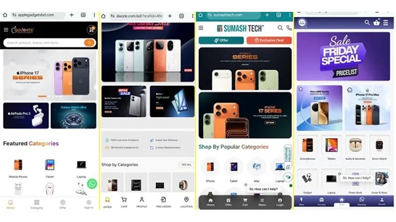 সুমাস টেকের এক বিক্রয়কর্মী ফোনে জানান, ‘স্যার, আমাদের আউটলেট আজ বন্ধ, কিন্তু আপনি ওয়েবসাইটে বা পেজে অর্ডার করলে আমরা আজই হোম ডেলিভারির ব্যবস্থা করে দেব। আমাদের স্টক এভেইলেবল আছে।’ একই চিত্র দেখা গেছে আপেল গ্যাজেটের ক্ষেত্রেও।