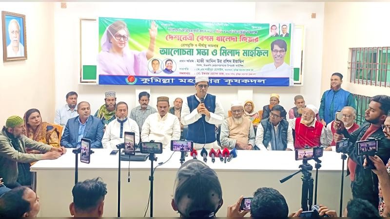 কুমিল্লা মহানগর কৃষক দলের আহবায়ক কে. এম শাহীনুর হোসাইন এর সভাপতিত্বে আলোচনা সভায় বক্তব্য দেন সদর দক্ষিণ উপজেলা বিএনপির সাবেক সভাপতি বর্ষীয়ান রাজনীতিবিদ এস এ বারী সেলিম। মহানগর কৃষক দলের সদস্য সচিব মো. ইকরাম হোসেন তাজ-এর পরিচালনায় আলোচনা সভায় উপস্থিত ছিলেন কুমিল্লা মহানগর বিএনপির সাবেক যুগ্ম আহ্বায়ক শহীদুল্লাহ রতন, আতাউর রহমান ছুটি, মাহাবুবর রহমান দুলাল, মহানগর বিএনপির সাবেক সদস্য মুজিবুর রহমান কামাল, কুমিল্লা মহানগর যুবদলের সদস্য সচিব রোমান হাসান, জেলা স্বেচ্ছাসেবক দলের আহ্বায়ক সৈয়দ মেরাজ, কুমিল্লা মহানগর স্বেচ্ছাসেবক দলের আহ্বায়ক আমিরুল পাসা সিদ্দিকী রাকিব, মহানগর বিএনপি নেতা মনির হোসেন পারভেজ, সদর উপজেলা বিএনপির সাংগঠনিক সম্পাদক মো. ওমর ফারুক, মহানগর যুবদলের যুগ্ম আহ্বায়ক সাজ্জাদ হোসেন, কুমিল্লা মহানগর ছাত্রদলের সভাপতি নাহিদ রানা, জেলা ছাত্রদলের সভাপতি কাজী জোবায়ের আলম জিলানী, সাধারণ সম্পাদক ইমদাদুল হক ধীমান, সাংগঠনিক সম্পাদক শাহাদাৎ হোসেন রবিন, মহানগর ছাত্রদলের সাংগঠনিক সম্পাদক ইসমাইল হোসেনসহ অন্যরা। এসময় কুমিল্লা মহানগর কৃষকদলের বিভিন্ন ওয়ার্ড নেতৃবৃন্দ উপস্থিত ছিলেন। আলোচনা সভা শেষে দেশনেত্রী বেগম খালেদা জিয়ার রোগমুক্তি কামনায় দোয়া ও মুনাজাত পরিচালনা করা হয়।