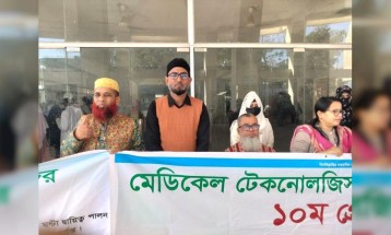 মেডিকেল টেকনোলজিস্ট ও ফার্মাসিস্টদের দশম গ্রেড বাস্তবায়নের দাবিতে আজ নেত্রকোনায় তিন ঘণ্টাব্যাপী অবস্থান কর্মসূচি পালন করেছেন জেলার মেডিকেল টেকনোলজিস্ট ও রেজিস্টার্ড ফার্মাসিস্টরা। সকাল ৮টা থেকে ১১টা পর্যন্ত কর্মসূচি ১১ ডিসেম্বর বৃহস্পতিবার সকাল ৮টা থেকে বেলা ১১টা পর্যন্ত জেলা সদর হাসপাতালের সামনে এই অবস্থান কর্মসূচি পালিত হয়।