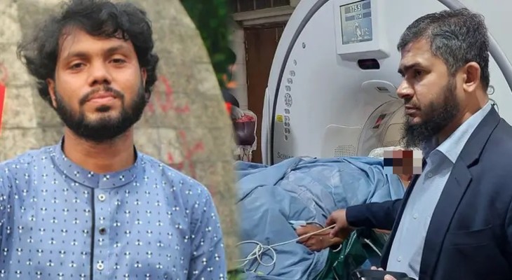 ঢামেক পরিচালক আসাদুজ্জামান বলেন, তার মাথায় বুলেটের আঘাত আছে। বুকে ও পায়েও আঘাত আছে। ধারণা করা হচ্ছে পায়ের আঘাতটা রিকশা থেকে পড়ে গিয়ে হতে পারে। আমরা ঢাকা মেডিকেলে একটা প্রাথমিক সার্জারি (অস্ত্রোপচার) করেছি। এখন তাকে এভারকেয়ার হাসপাতালে পাঠাচ্ছি।
