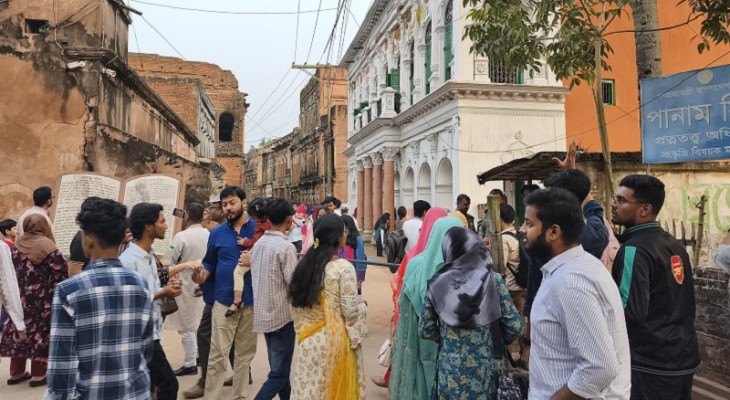 পানাম নগর, বাংলাদেশ লোক ও কারুশিল্প ফাউন্ডেশন, বারদী ও মেঘনার ঘাট-সবখানেই এখন মানুষের ভিড়। ইতিহাসের টানে আসা তরুণদের ক্যামেরা ক্লিকের শব্দ, শিশুদের দৌড়ঝাঁপ ও হাসি, পরিবারের ব্যস্ততা আর দম্পতিদের নিরিবিলি কোনো কোণ খোঁজার চেষ্টা-সব মিলিয়ে সোনারগাঁ যেন এক জীবন্ত দৃশ্যপটে রূপ নিয়েছে।