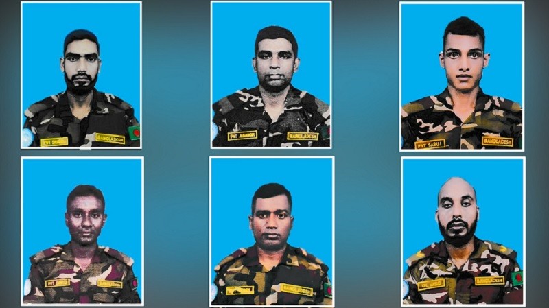শহীদ ৬ শান্তিরক্ষী সদস্যরা হলেন- কর্পোরাল মো. মাসুদ রানা, এএসসি (নাটোর); সৈনিক মো. মমিনুল ইসলাম, বীর (কুড়িগ্রাম); সৈনিক শামীম রেজা, বীর (রাজবাড়ী); সৈনিক শান্ত মণ্ডল, বীর (কুড়িগ্রাম); মেস ওয়েটার মোহাম্মদ জাহাঙ্গীর আলম (কিশোরগঞ্জ); লন্ড্রি কর্মচারী মো. সবুজ মিয়া (গাইবান্ধা)।