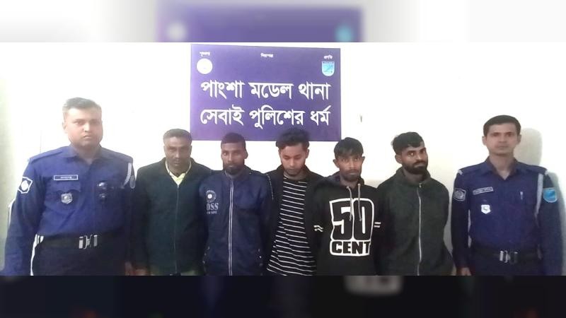 পাংশা মডেল থানা সুত্রে জানা যায়, অভিযানে মোঃ ইমরান শেখ (৩২), পিতা- সাকেন শেখ,সাং-নারায়নপুর মোঃ সুমন মন্ডল (২৮), পিতা- রমজান মন্ডল, সাং- বিষ্ণপুর মোঃ আনোয়ার হোসেন কালু (৫৩), পিতা- মৃত আঃ করিম শেখ,সাং- তত্তিপুর, শাহজাহান (৩৯), পিতা-মৃত তারেক পরামানিক,সাং- চর ঝিকরি, মোঃ ইমরান শেখ (৩২), পিতা- মোঃ সাকেন শেখ, সাং- নারায়নপুর, নাফিজ (১৯), পিতা- আনিছুর রহমান, সাং-কুড়াপাড়া, উপজেলা- পাংশা, জেলা-রাজবাড়ীসহ সর্বমোট ০৫ জনকে গ্রেফতার করা হয়।