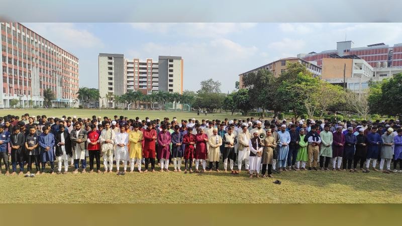 গায়েবানা জানাজায় বিশ্ববিদ্যালয়ের কোষাধ্যক্ষ, বিভিন্ন অনুষদের ডিন, শিক্ষক, কর্মকর্তা-কর্মচারীসহ কয়েকশ’ শিক্ষার্থী স্বতঃস্ফূর্তভাবে অংশগ্রহণ করেন।