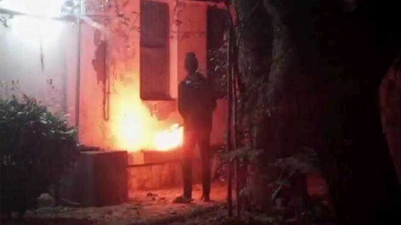 প্রত্যক্ষদর্শী প্রতিবেশী তরুণ কুমার জানান, রাত ১১ টার দিকে কয়েকজন দুর্বৃত্ত বোতলে পেট্রোল ভরে এনে ভবনের পেছনের দিকে প্রবেশ করে। তারা মূল ফটক ও জানালার অংশে আগুন ধরিয়ে দিয়ে দ্রুত পালিয়ে যায়। আগুন দেখে প্রতিবেশীরা এসে দ্রুত নিয়ন্ত্রনে আনে।