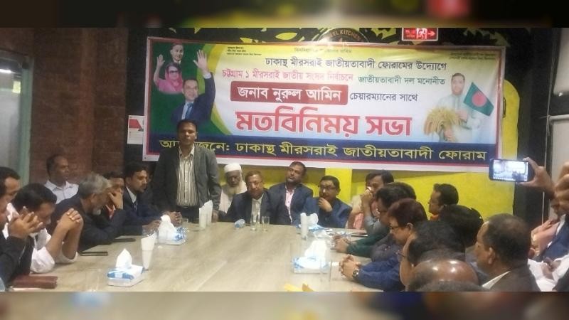 ঢাকাস্থ মীরসরাই জাতীয়তাবাদী ফোরামের উদ্যোগে বাংলাদেশ জাতীয়তাবাদী দল (বিএনপি) মনোনীত চট্টগ্রাম -১ মীরসরাই আসনের প্রার্থী জনাব নুরুল আমিন চেয়ারম্যান সাহেবের সাথে "নির্বাচন সংক্রান্ত মতবিনিময় সভা" মতিঝিলস্থ কিচেন ইয়ার্ডে (V. I. P কক্ষ) গতকাল ১৯/১২/২০২৫ ইং তারিখ সন্ধ্যা ৬ ঘটিকায় অনুষ্ঠিত হয়। এতে ফোরামের সভাপতি জনাব মো: আইয়ুব খান এর সভাপতিত্বে সাধারণ সম্পাদক মো: মুজাহিদুল ইসলামের সঞ্চালনায় প্রধান অতিথি হিসেবে বক্তব্য রাখেন বাংলাদেশ জাতীয়তাবাদী দল (বিএনপি) মনোনিত চট্টগ্রাম -১ মীরসরাই আসনের প্রার্থী জননেতা জনাব নুরুল আমিন চেয়ারম্যান সাহেব।